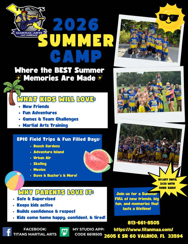 Experience the benefits of martial arts training at Titans Martial Arts Academy in Valrico, Florida. Whether you're looking to improve your fitness, learn self-defense, or simply have fun, our diverse programs and experienced instructors are here to help you achieve your goals.